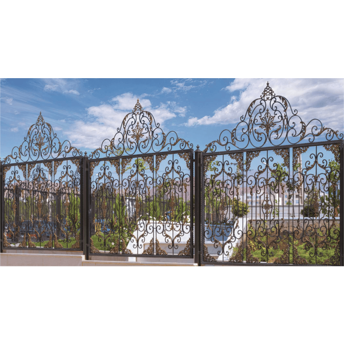 Handcrafted wrought iron gate with decorative scrollwork and timeless appeal